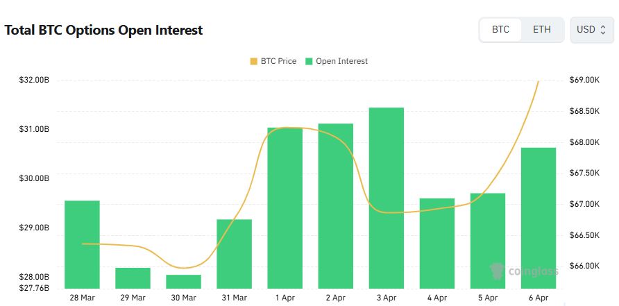 交易量居前的合约包括:38万美元看涨期权(6月26日到期·Deribit)、6.7万美元看跌期权(4月24日到期·Deribit)及6.85万美元看涨期权(4月6日到期·Bybit),凸显近期市场对特定行权价的集中押注。