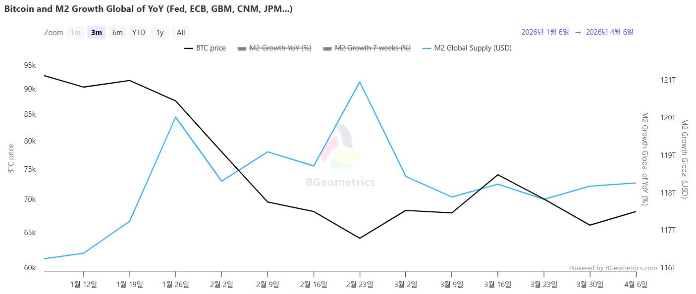 截至4月6日,全球广义货币供应量(M2)达到118.3587万亿美元,相较于前一周微幅上升0.07%,增长动能明显减弱。