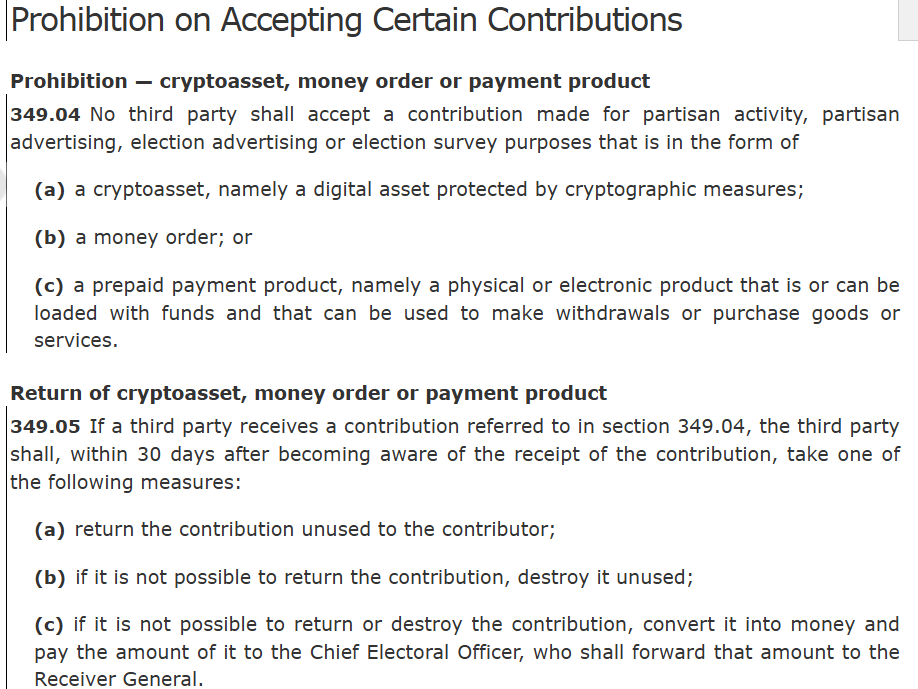 加拿大拟全面封杀加密币政治捐款