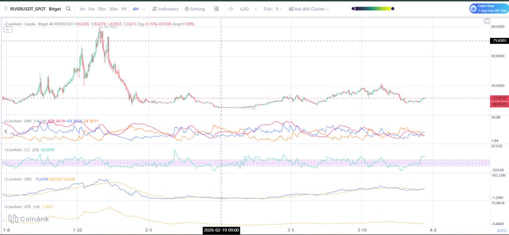 截至撰稿时,RIVER价格在单日涨幅中位居前列,攀升接近23%,当前报价约为17.43美元。伴随价格上涨,其交易额同比上升约18%,反映出市场参与度显著提升,真实资金流动正在推动这一波行情。