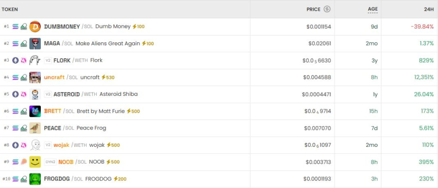 去中心化交易所热点币种异动:FLORK单日暴涨829%