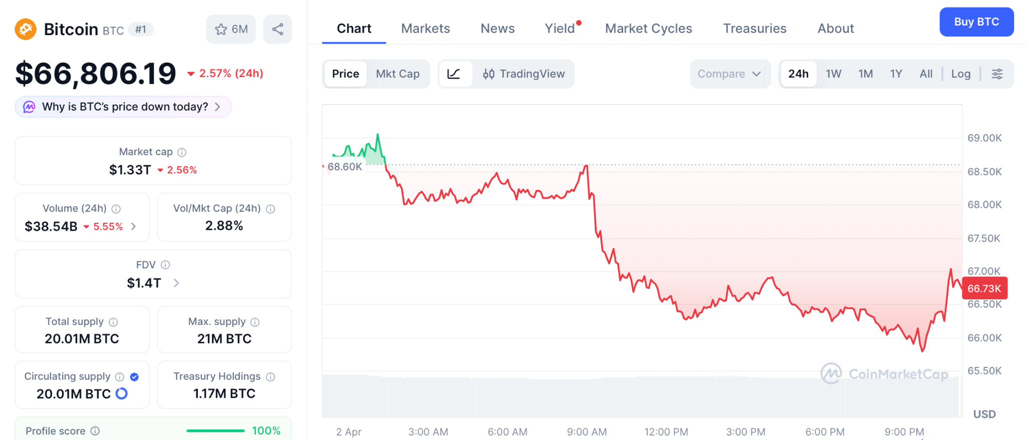 比特币当前价格约为66,806美元,尽管在第一季度跌幅达22%,但依靠3月13亿美元的ETF净流入实现部分反弹。即便乐观预估,其从现价上涨12%的空间也极为有限,远不足以承载一次爆发式行情。