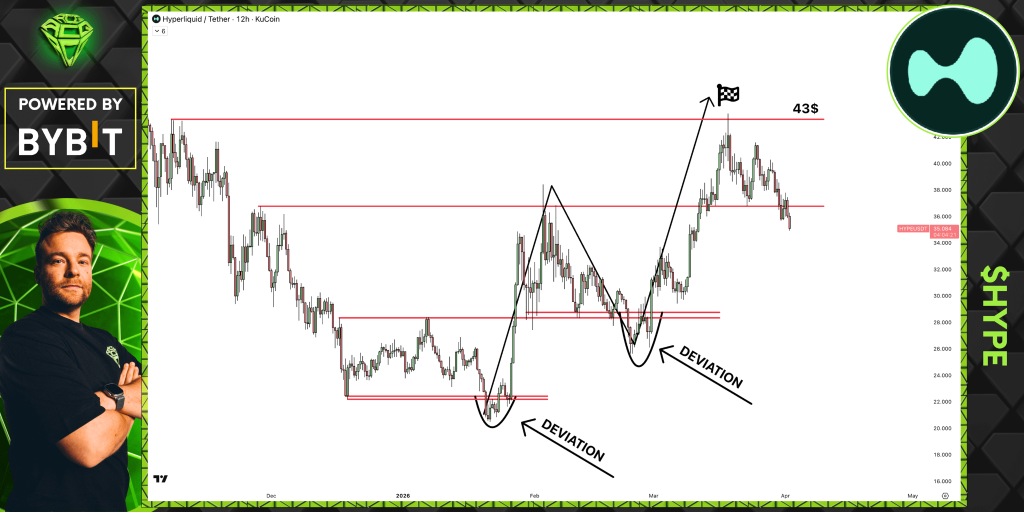 在经历一波强劲上行至43美元区间后,HYPE价格回调并重新引发市场关注。这一走势并非偶然,早期技术观察者早已将该区域设定为明确的目标价位。当前价格再次逼近核心阻力带,市场注意力集中于后续方向选择。