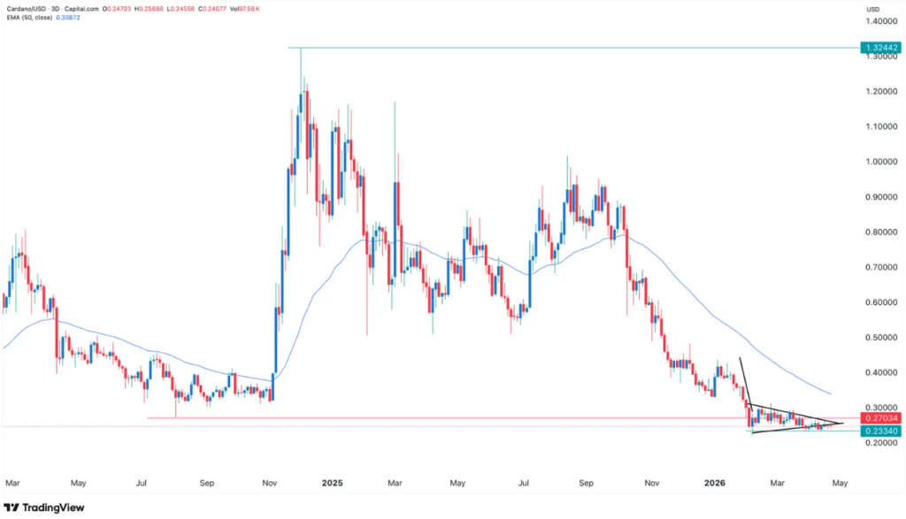 卡尔达诺代币价格维持在0.25美元左右的狭窄区间内波动,反映出市场交易情绪低迷与需求不足。该价位已连续多日未有明显突破,基本锁定在2月以来的震荡范围,显示出投资者参与意愿持续走弱。
